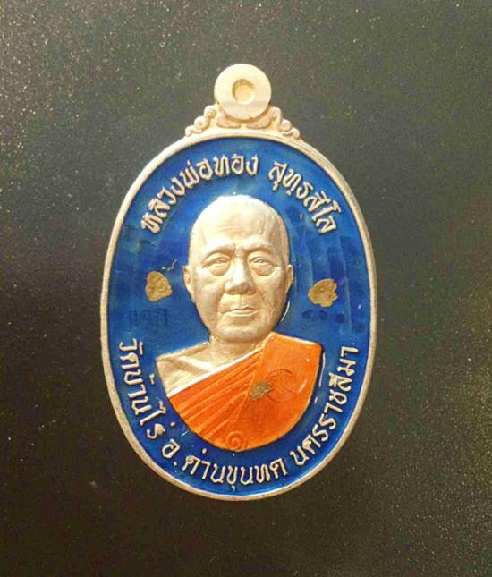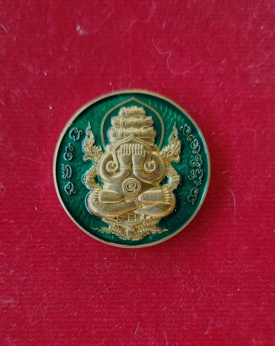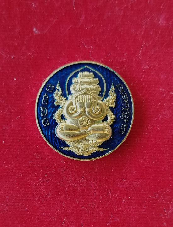 เหรียญพระปิดตาพังพระกาฬ หลังพหุรมาน หลวงปู่มหาศิลา สิริจันโท รุ่นรวยโชคอนันต์ เนื้อทองฝาบาตร ลงยาน้ำเงิน no.585 เลขหาม แยกจากชุดกรรมการลงยา กล่องเดิม |