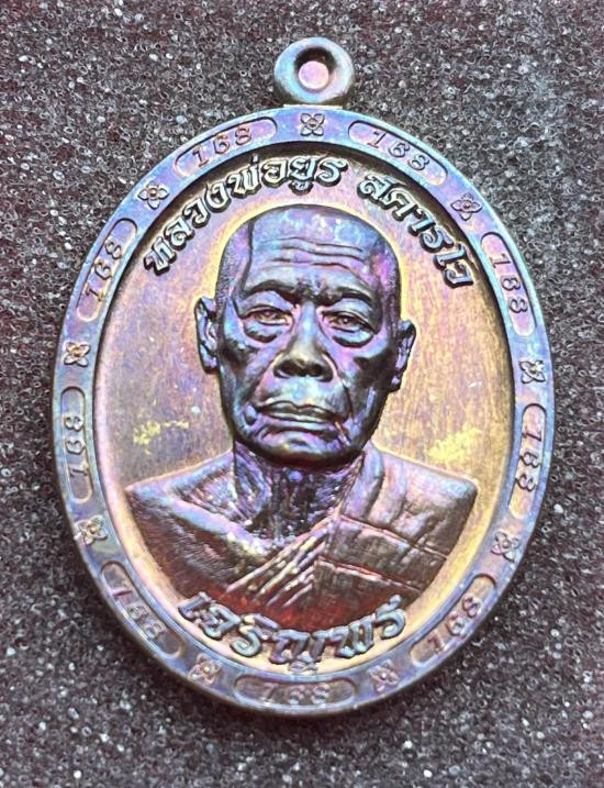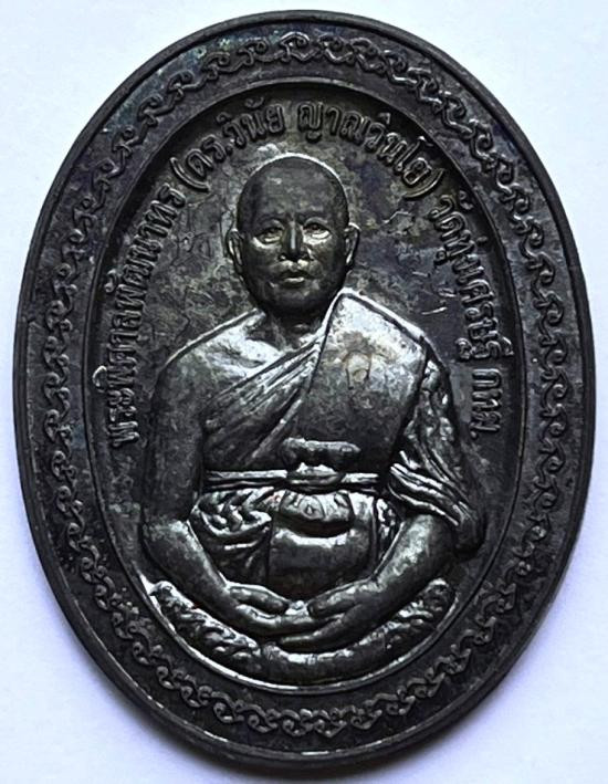 เหรียญพระครูปลัดวิชัย ปฺญญาทีโป วัดสันติวิหาร จ.สระบุรี รุ่น 2 เนื้อนวะ ปี 2557 กล่องเดิม หลังจาร |