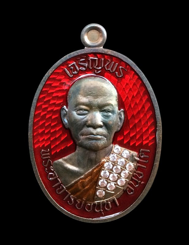 เคาะเดียวแดง พระสังฆราช รุ่น ทรงประทานพร เลข693 เนื้อ ชุบทองลงยาแดง |