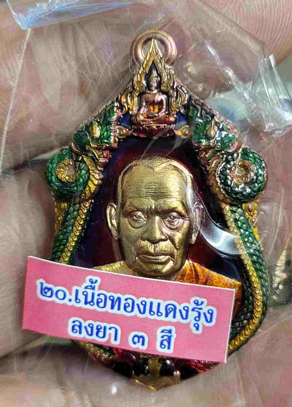 เคาะเดียวแดง หลวงปู่โต๊ะ รุ่น 125ปี วัดถ้ำสิงห์โตทอง เลข116 เนื้อ ชุบทองลงยาแดง |