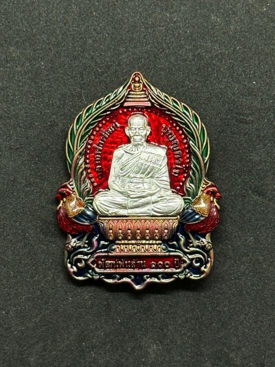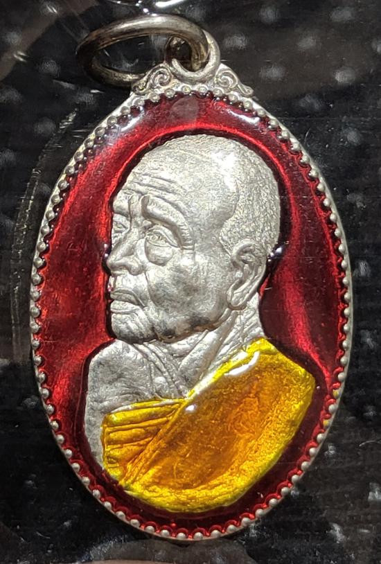 เหรียญหันข้าง เนื้อเงินลงยา ปี 2550 หลวงปู่แผ้ว ปวโร ลงยาสีแดง หมายเลข 173 |