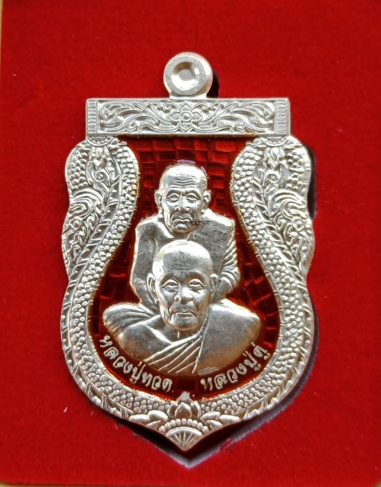วัดใจแดงแรก หลวงพ่อบ้านแหลม พิมพ์นางพญา (คู่) ตามรูป เนื้อเงินแท้ ขัดเงาพ่นทราย ปี2546 (นน.16กรัม) |