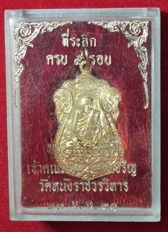 เหรียญหลวงพ่อรวย วัดตะโก รุ่น อายุมั่นขวัญยืน ปี 2555 เนื้อกะไหล่ทอง หมายเลข 32 |