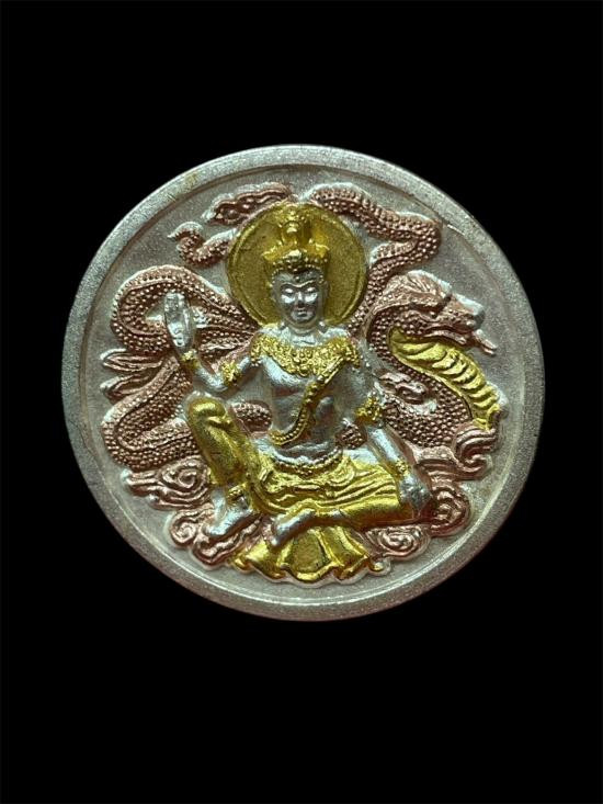 เหรียญท้าวเวสสุวรรณ พระครูอนุวัตรบวรกิจ วัดบึงตาหอม จ.ฉะเชิงเทรา พ.ศ.2563 เนื้อเงินลงยาสีเขียว 2 หน้า สภาพสวยพร้อมกล่องเดิม |