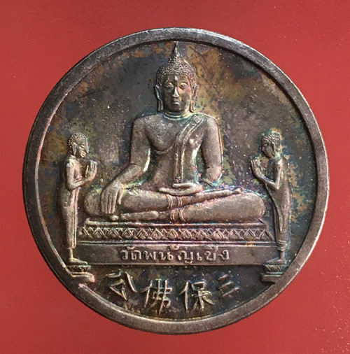 เหรียญหลวงพ่อโต วัดพนัญเชิง หลังม้งกร เนื้อเงิน ตอกโค๊ดด้านหลัง ไม่ทราบปีสร้าง |
