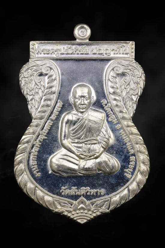 เหรียญเสมา รุ่น 2 ยกช่อฟ้า เนื้อเงิน พระครูปลัดวิชัยปัญญาทีโป จารเต็มเต็มสูตร สร้างจำนวน 2557 เหรียญ ตามปีที่สร้าง ราคาจอง4800 สวยวิ้งๆ ลายอักขระยันต์ด้านหลังจารเต็มสูตร ด้วยยันต์ตารางและกระบองไขว้ |