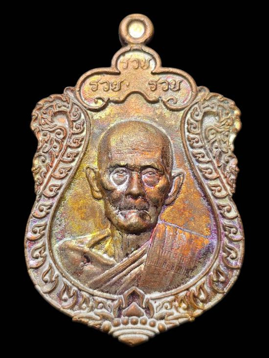 เปิดแบ่งปันราคาวัดใจเหรียญเลื่อนสมณศักดิ์หลวงพ่อรวยเนื้อทองแดงกะไหล่ทองสภาพสวย |