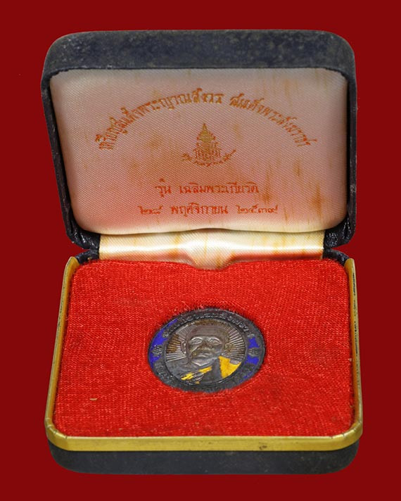 เหรียญพระชัยหลังช้าง ในหลวงครบ 5 รอบ หลัง ภปร. พิธีปลุกเสกพร้อมเหรียญพระนอน วัดโพธิ์ ปี 2530 |