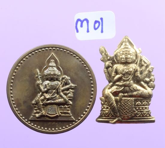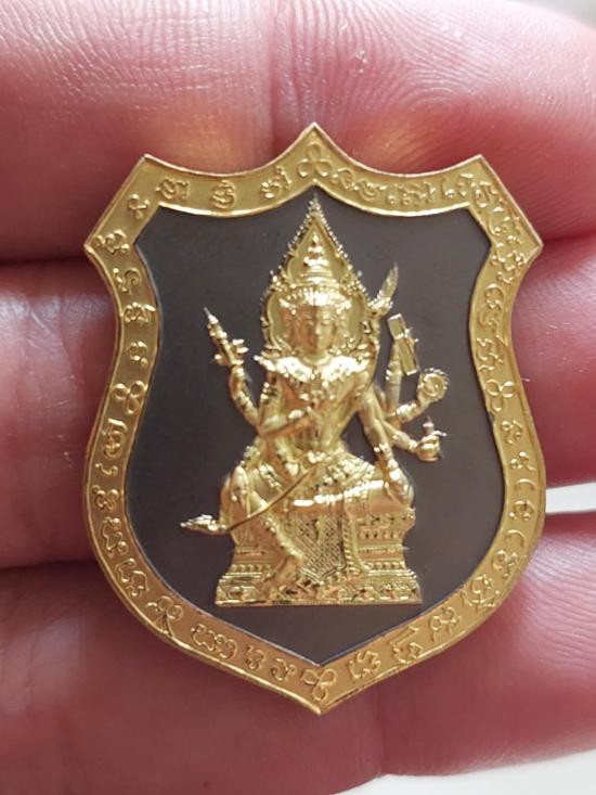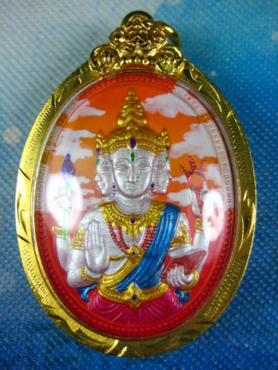 เหรียญพระพรหม รุ่นพรหมประทานพร เนื้อเพ้นท์เต็มระบบเลียมกรอบทอง หมายเลขตอง ๓๓๓ หลวงพี่เลี้ยง วัดจอมเกษ จ.พระนครศรีอยุธยา (---A99---) |