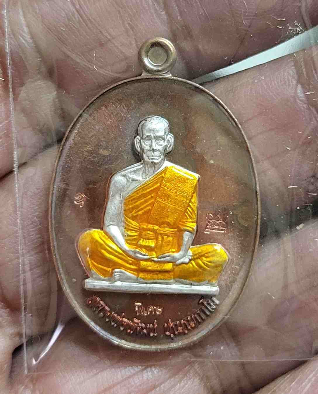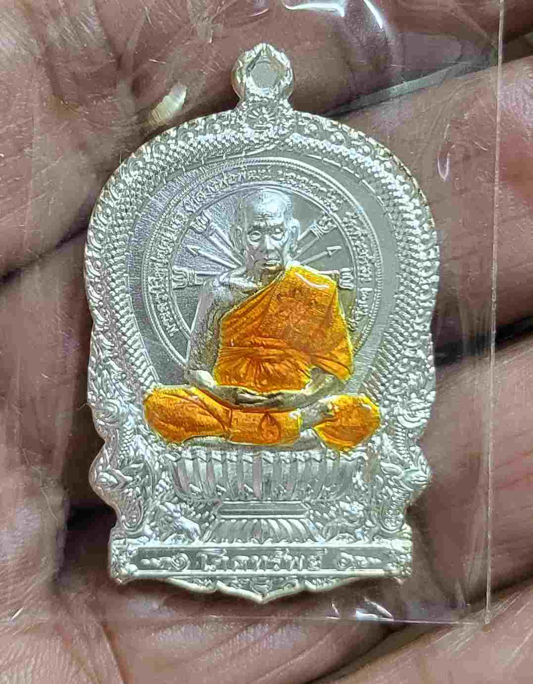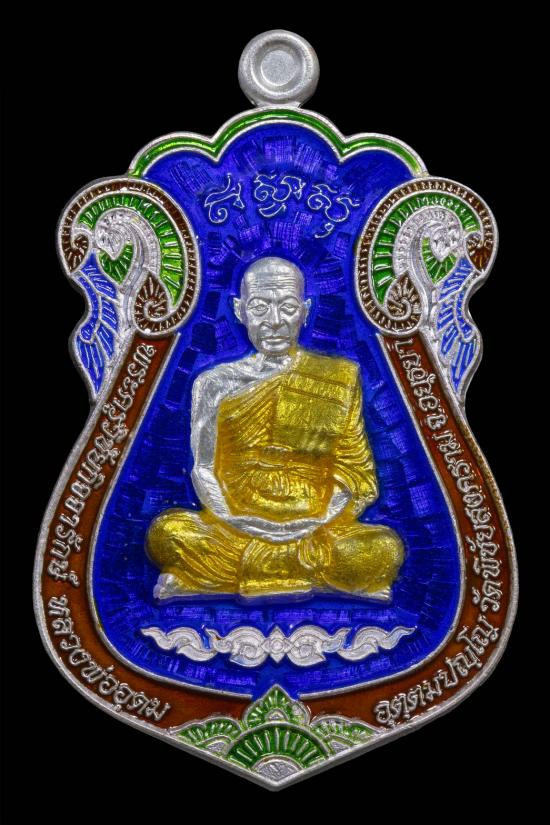 *วัดใจ* เหรียญหลวงปู่ศุข วัดปากคลองมะขามเฒ่า เนื้อเงินลงยา ปี2556 พร้อมเลี่ยมเงิน |