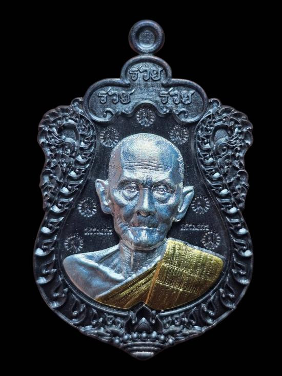 เหรียญเสมา8รอบรุ่นรวยรวยรวย หลวงปู่ฝั้น ปสาโท วัดหน้าผา (เนื้อทองแดงรมดำตอกโค๊ต ลป.รอบหน้ากาก2k เลข2) |