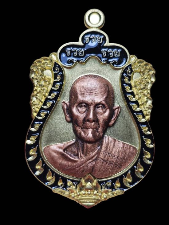 HOT!!! เหรียญเสมารวยมหาเศรษฐี ปี 2557 เนื้ทองแดง เลขโค๊ด 715 พร้อมเลี่ยม หลวงพ่อรวย วัดตะโก เคาะเดียว |