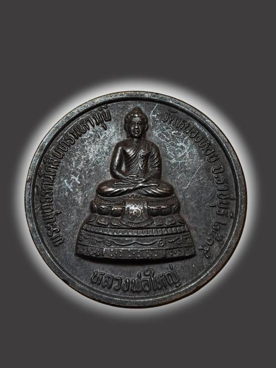 เหรียญนั่งพาน หลวงพ่อพัฒน์ วัดห้วยด้วน เนื้อทองแดงรมดำ