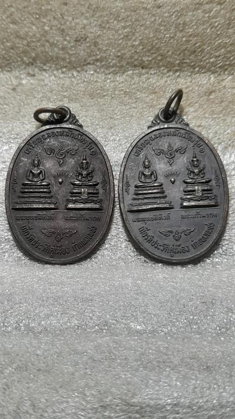 เหรียญเจริญพรบน รูปไข่ รุ่นแรก หลวงพ่อชำนาญ วัดชินวราราม จ.ปทุมธานี พิมพ์เครึ่งองค์ หลังพระพรหม(นิยม) 2 เหรียญ |