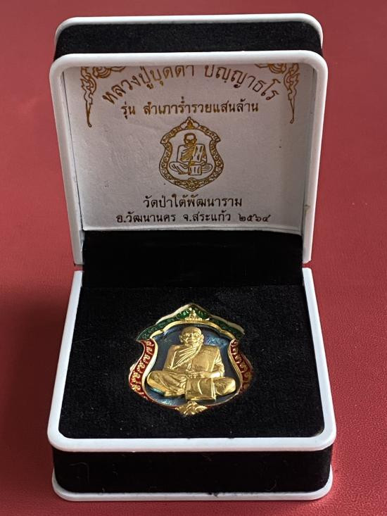 เคาะเดียวแดง หลวงปู่บุดดา รุ่น สำเภาร่ำรวยแสนล้าน รายการที่3.2 เนื้อ นวะหน้ากากชุบทอง ขอบชุบทองลงยา |