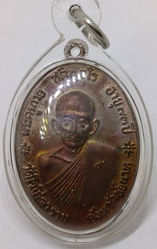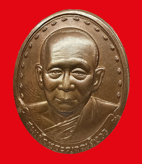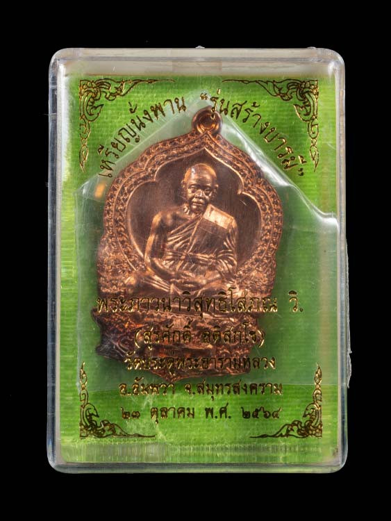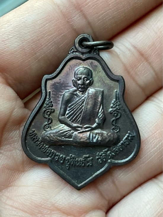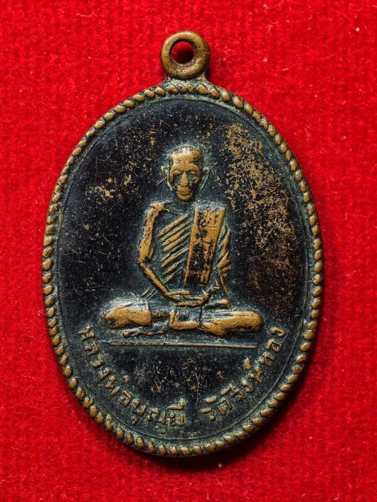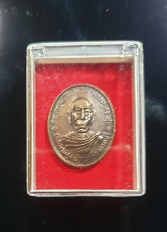 เหรียญหลวงพ่อทองสุข วัดสะพานสูง เนื้อทองแดงไม่ทราบปี มีกล่องใส่ให้ขนาดขนส่ง |