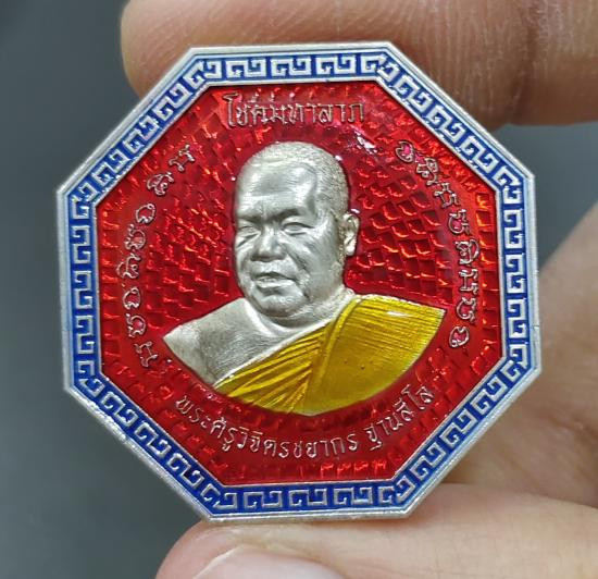 ((วัดใจค่ะ))เหรียญหลวงพ่อกำจัด สุจิตฺโต เนื้อเงินลงยา หมายเลข15 สร้าง59องค์ หนัก13.08กรัมค่ะ |
