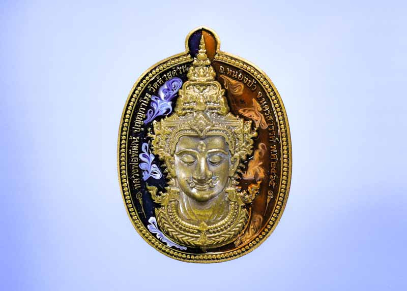 เหรียญพระเจ้าใหญ่อินทร์แปลง เนื้อเงินลงยา หมายเลข 47 สวยกล่องเดิม |
