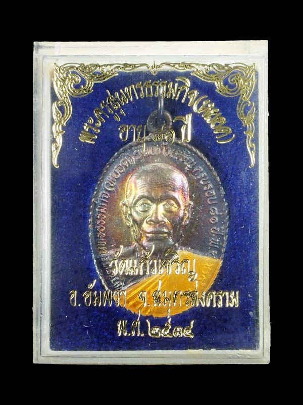 ###### เหรียญหลวงพ่อหยอด วัดแก้วเจริญ จ.สมุทรสงคราม ปี 2534 เนื้อเงิน ผิวรุ้ง กล่องเดิม สวยเดิม ###### |