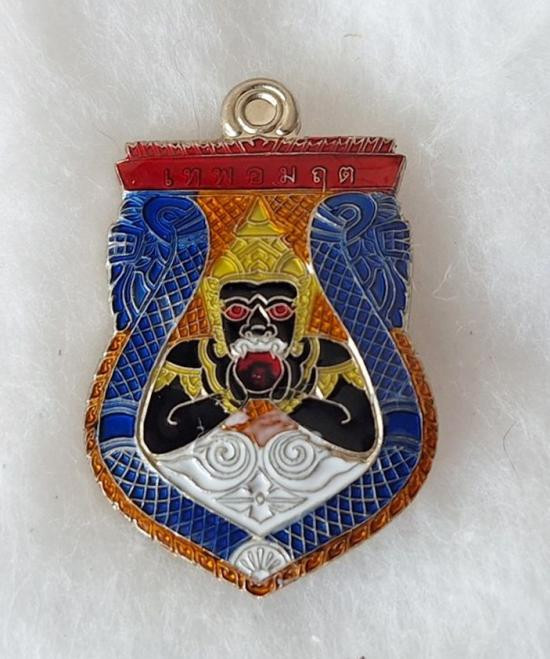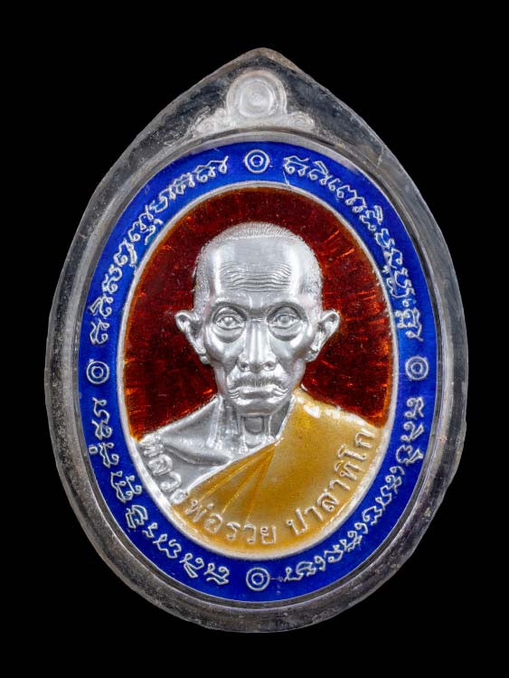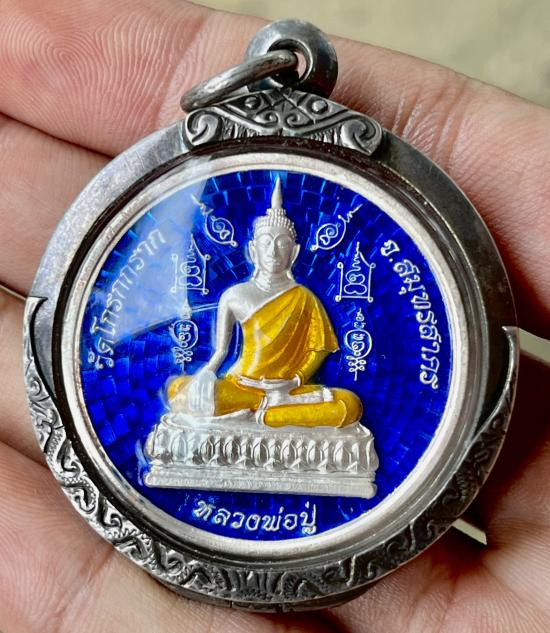 เหรียญหลวงพ่อปู่ วัดโกรกกราก จ.สมุทรสาคร เนื้อเงินลงยาน้ำเงิน |