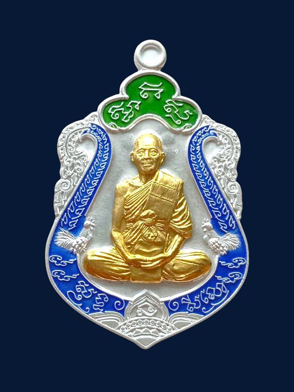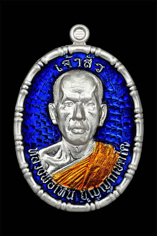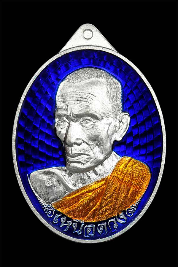เหรียญหลวงปู่เผือก ผู้ชนะสิบทิศสร้างโบสถ์ ปี59 เนื้อเงินลงยาน้ำเงิน |