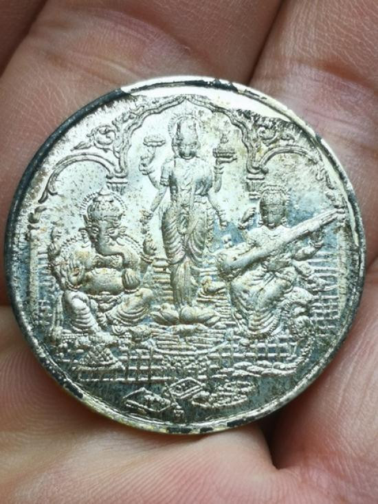 เหรียญ พระแม่สรัสวตี พระแม่ลักษมี และพระพิฆเนศ เนื้อเงินออกวัดแขก สีลม เนื้อเงิน สภาพตามรูป ราคาเบาๆ |