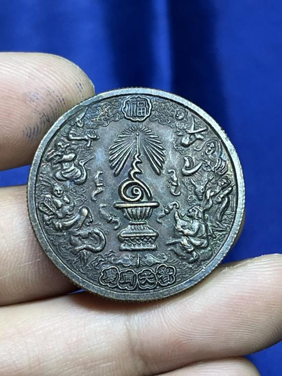 เหรียญมังกรคู่ หลวงปู่แดง วัดสุนทราราม ศรีสะเกษ เนื้อเงิน เลข 108 เคาะเดียว |