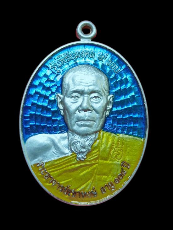 เหรียญเงินลงยา 2 หน้าหลวงปู่พิชัยฐิติลาโภเหรียญฉลอง 9 รอบอายุ 108 ปี..สวยครับพิเศษรูปถ่ายหลวงปู่เสก 3 วาระด้านหลังปิดจีวรที่หลวงปู่ครอง 5 ปี |