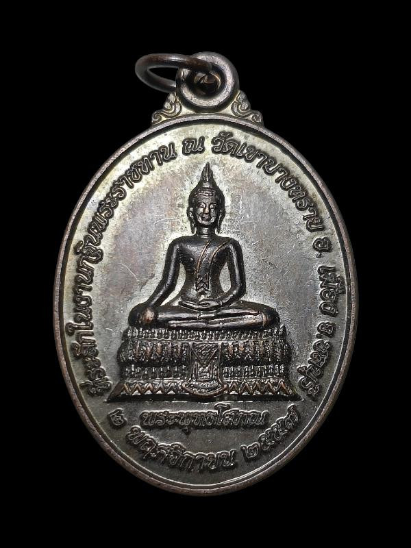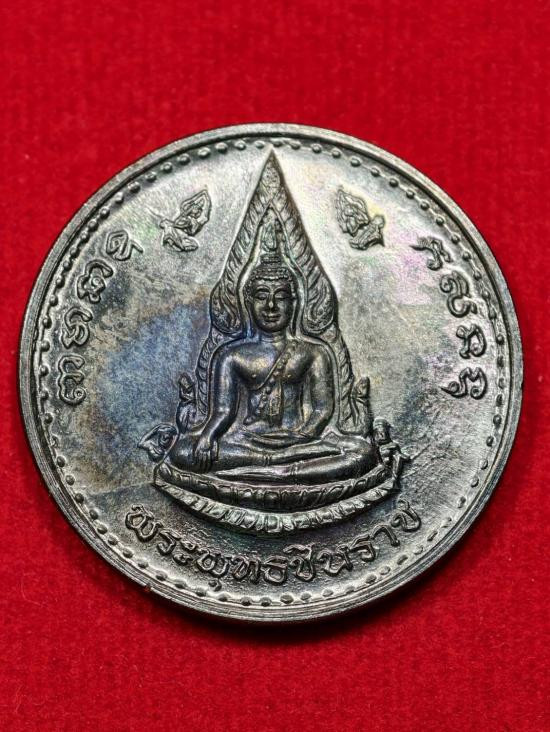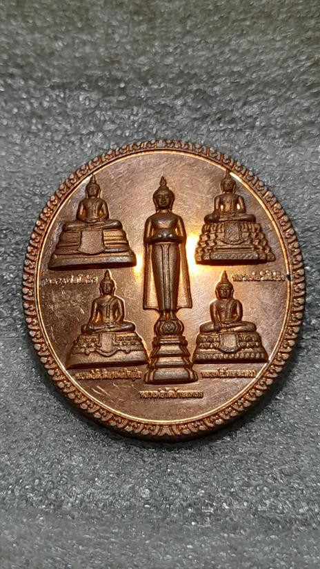 เหรียญในภาพคือเหรียญที่ระลึกสมเด็จพระนเรศวรมหาราช รุ่น "จักรพรรดิมหาพุทธาภิเษก" เสาร์ 5 เนื้อนวโลหะ ปี 2536 |