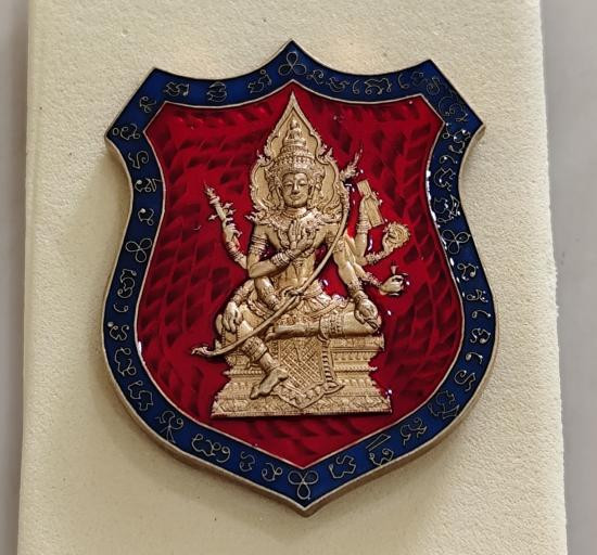 เหรียญท้าวมหาพรหม รุ่นเจ้าสัวพันล้าน(บอย ท่าพระจันทร์) เนื้อสัมฤทธิ์ซาตินลงยาพื้นแดงขอบน้ำเงิน เลขโค๊ต ๑๔๐๙ พร้อมกล่องเดิม |