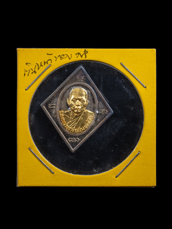 เหรียญทองหมื่นยันต์ หลวงพ่อทอง วัดบ้านไร่ เนื้อเงินลงยา เลข 87 เคาะเดียว |