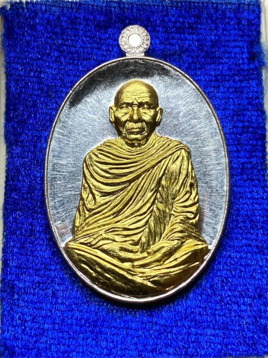เหรียญเสมาสร้างบารมี หลวงพ่อวิชัย วัดหัวเด่น "เนื้อเงินหน้ากากทองคำ หมายเลข 9 มงคลของรุ่น |