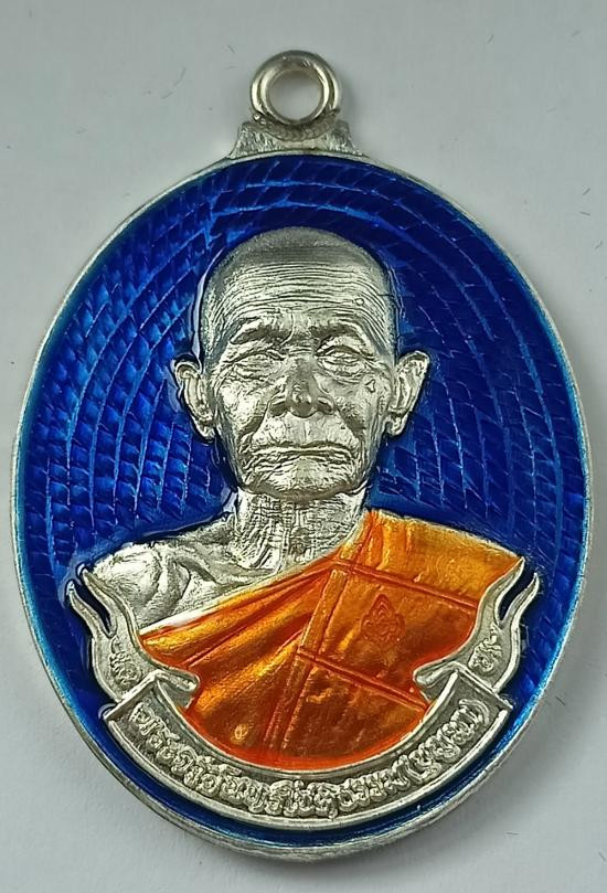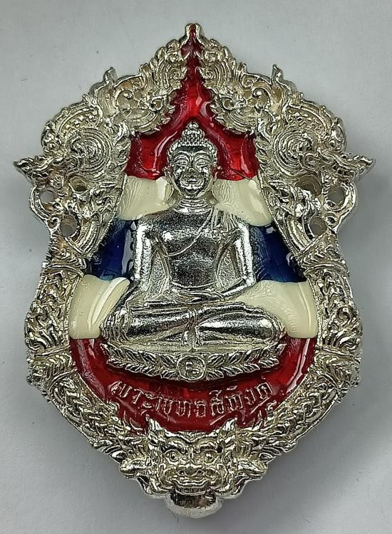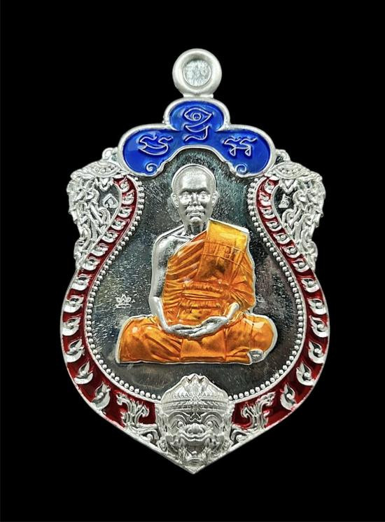 เหรียญเสมาสร้างบารมี หลวงพ่อวิชัย วัดหัวเด่น "เนื้อเงินลงยาหลังกึ่งเรียบ" หมายเลข 9 (1 ใน 9 เหรียญ) |