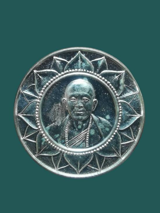 เหรียญบาตรน้ำมนต์รุ่นแรก เนื้อนวะพรายเงิน หลวงพ่อพูน วัดบ้านแพน อยุธยา เลี่ยมพลาสติกรักษาผิวไม่ผ่านการแขวนบูชา |