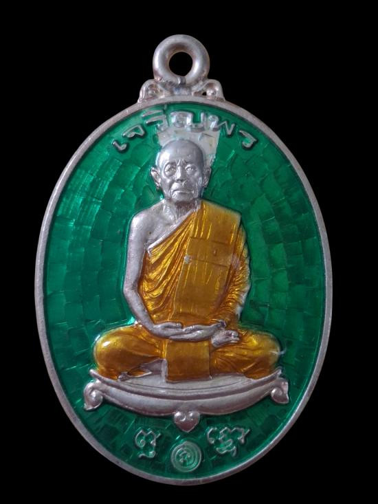 เงิน%สูงมากกว่า 99% เหรียญพิมพ์นั่งพาน รุ่น 1 หลวงพ่อสวัสดิ์ ปุณณสีโล เนื้อเงินลงยาสีเขียว หมายเลข 184 วัดใจเคาะแรก!!! |