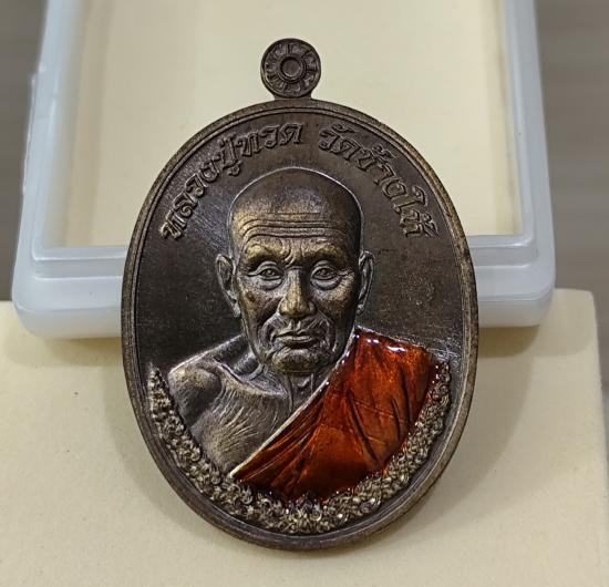 พระสวย.. เหรียญหลวงปู่ตี๋ วัดท่ามะกรูด รุ่นเจริญสุข เนื้อทองแดงรมดำ ปี 53 หมายเลข4347 พร้อมกล่องเดิม |