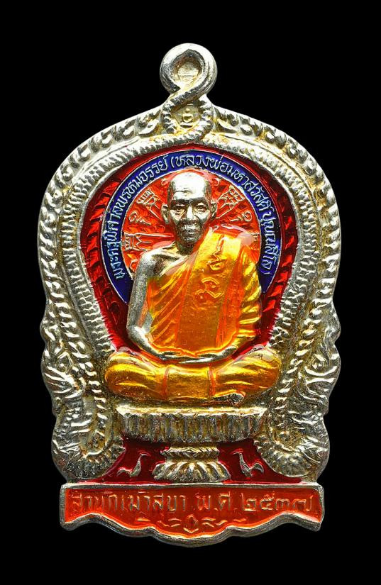 เงิน%สูงมากกว่า 99% เหรียญพิมพ์นั่งพาน รุ่น 1 หลวงพ่อสวัสดิ์ ปุณณสีโล เนื้อเงินลงยาสีส้ม หมายเลข 183 วัดใจเคาะแรก!!! |