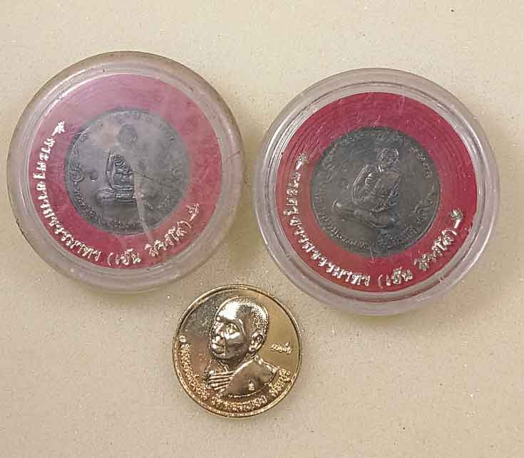 วัดใจ เหรียญ 2 เหรียญ หลวงปู่หงษ์ ออกวัดเพชรบุรี สุรินทร์ |