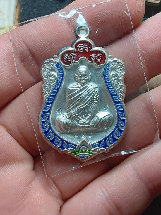 เงิน%สูงมากกว่า 99% เหรียญพิมพ์นั่งพาน รุ่น 1 หลวงพ่อสวัสดิ์ ปุณณสีโล เนื้อเงินลงยาสีฟ้า หมายเลข 102 วัดใจเคาะแรก!!! |