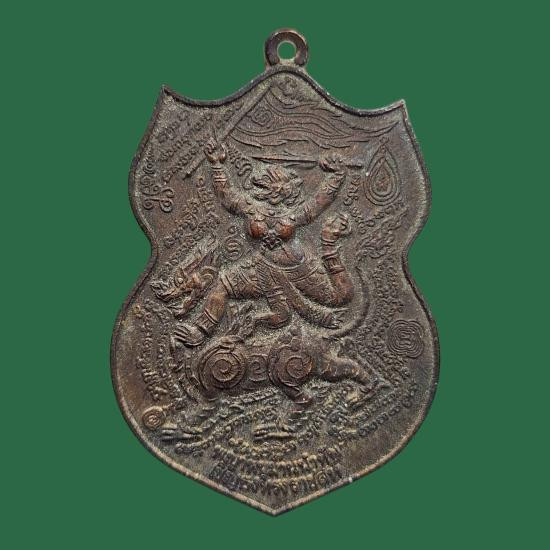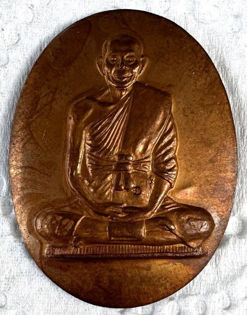 เหรียญสี่เหลี่ยมรูปเหมือน หลังยันต์เกราะเพชร ขนาดเล็ก เนื้อทองเหลือง สร้างเป็นที่ระลึก แซยิด 76 ปี ในปี 2539 |