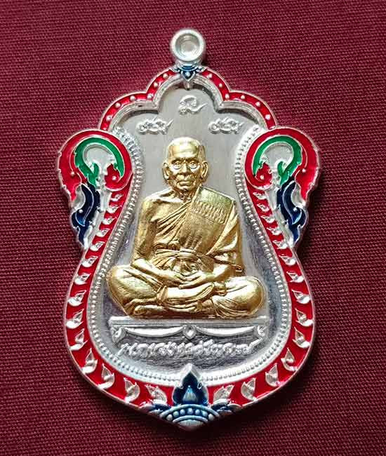 เหรียญสมปรารถนา หลวงปู่สงฆ์ วัดบ้านทราย เนื้อเงิน ลงยา |
