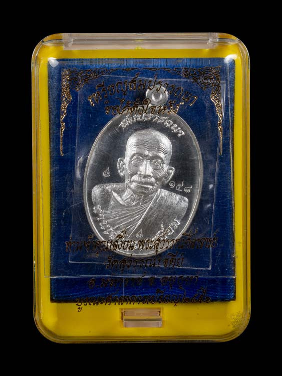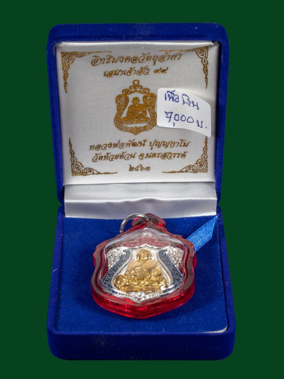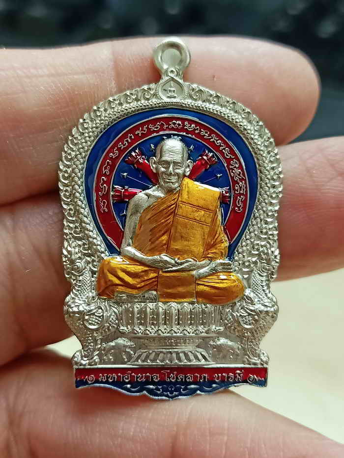จำปีพ่อโสธรสยบไพรีพินาศ แยกชุดกรรมการ เนื้อมหาชนวนกาหลั่ยทอง หน้าลงยาเขียว-หลังลงยาแดง โค้ตกรรมการ2495 |