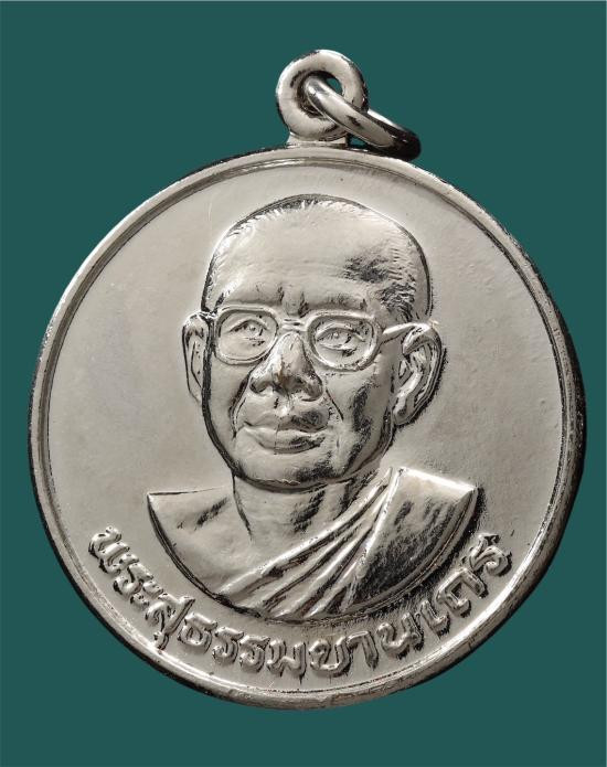เหรียญแม่ชีอุบาสิกาจันทร์ ขนนกยูง รุ่น มางานยายให้หลานยาย รวย ทุกคนนะ (เนื้อเงิน) |