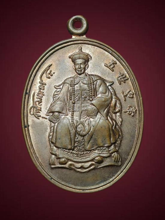 เหรียญพระรูป รัชกาลที่5 รุ่นทรงเครื่องจักรพรรดิ์จีน หลังพระนารายณ์ทรงครุฑ วัดป่าชัยรังสี สมุทรสาคร 2535 เนื้อทองแดง เจ้าคุณธงชัย ปลุกเสก |