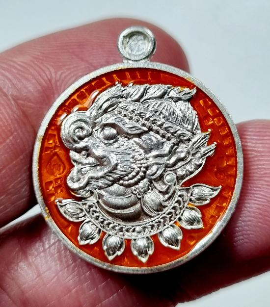 เหรียญหนุมานมหาปราบไตรจักร ลป .บุญ วัดปอแดง ปี59 เนื้อเงินลงยาแดง กรรมการหลังเรียบ หมายเลข1 |