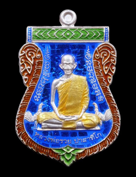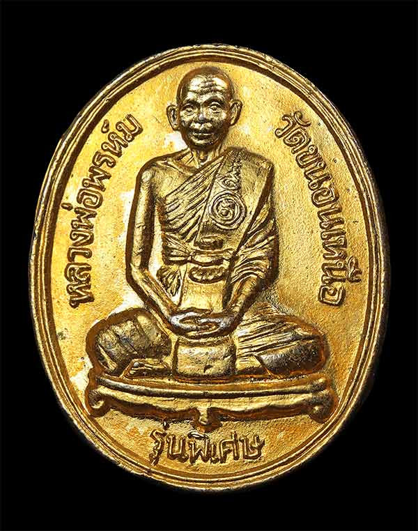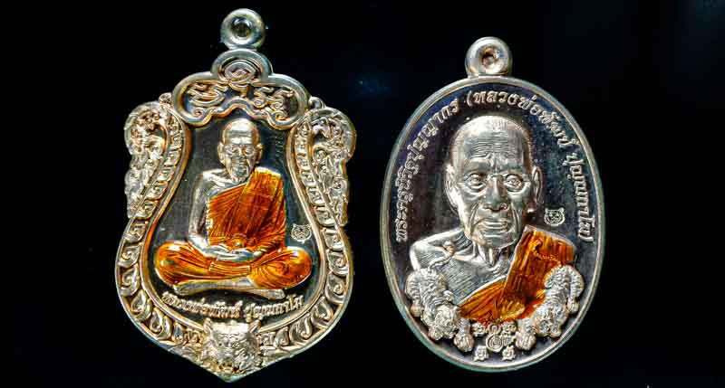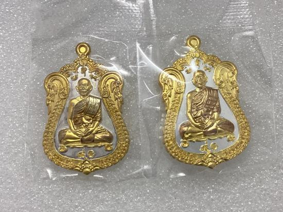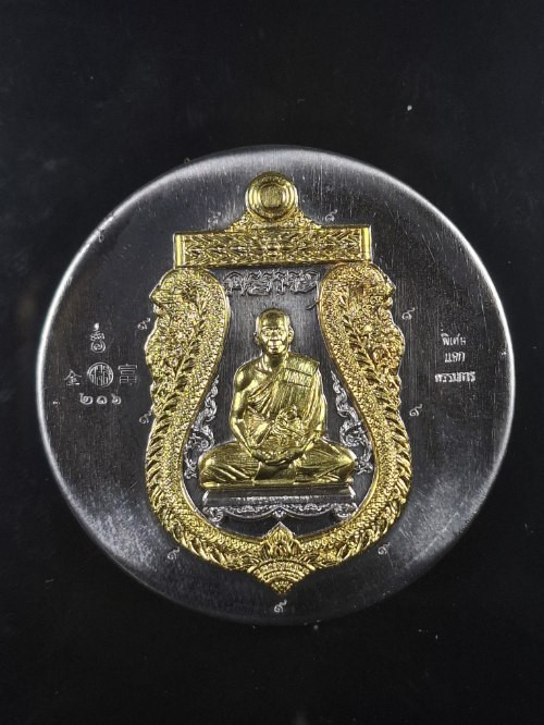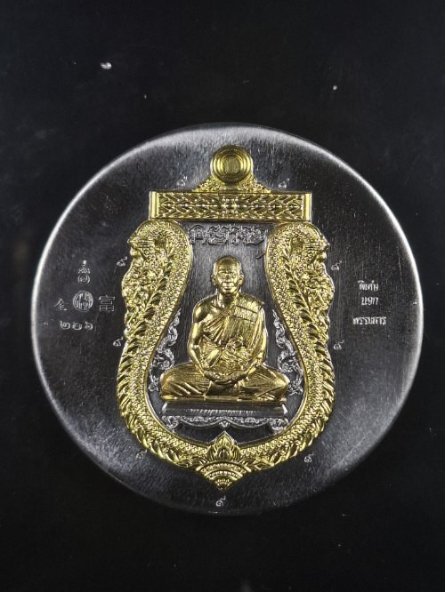 รวยเหนือดวง ลป.บุญมา เนื้อเงินฝังพลอยหน้ากากชุบทอง พร้อมกรอบ |