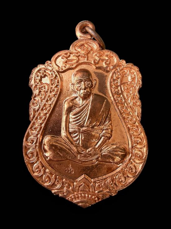 เหรียญรุ่นแรก เนื้อทองแดง ครูบาเลิศ วัดทุ่งม่านใต้ จ.ลำปาง |