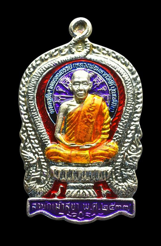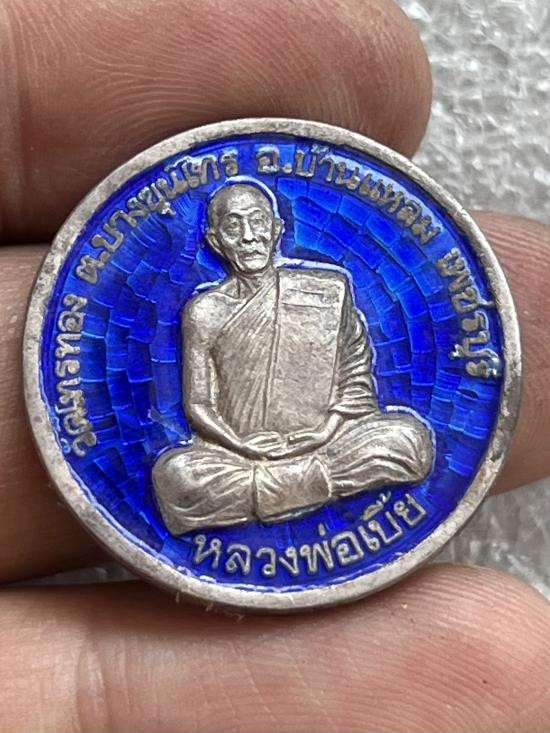 เหรียญเนื้อเงินลงยา หลวงพ่อเบี้ย วัดไทรทองจ.เพชรบุรี สวยเดิมๆ |