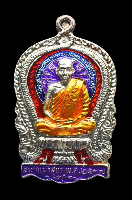 เหรียญนั่งพานเนื้อเงินลงยา หลวงพ่อเปลี้ย วัดชอนสารเดช ตำนานปืนแตก |