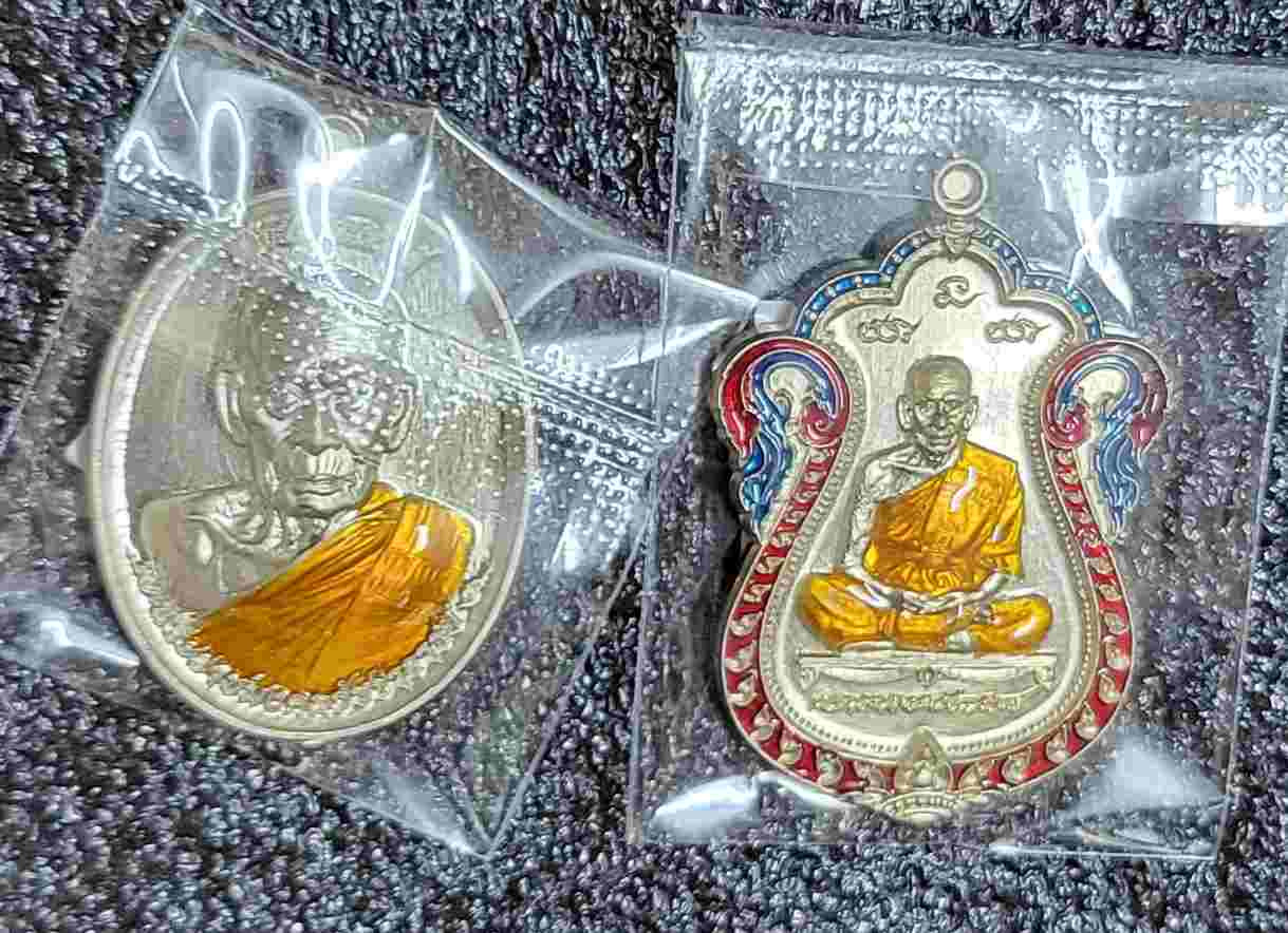 เคาะเดียวแดง เหรียญเลื่อนสมณศักดิ์ หลวงพ่อพัฒน์ เนื้อทองทิพย์ลงยา ลงยาหลังพัดหยด และเนื้อ Black โรเดียม รวม 2 เหรียญ |